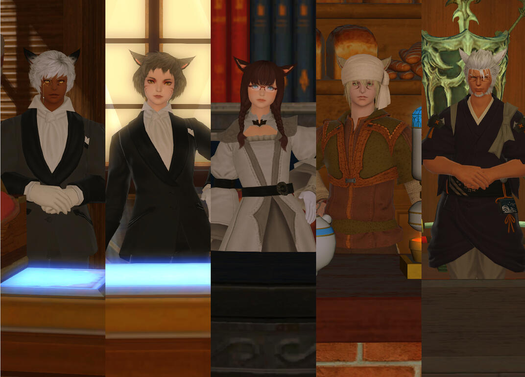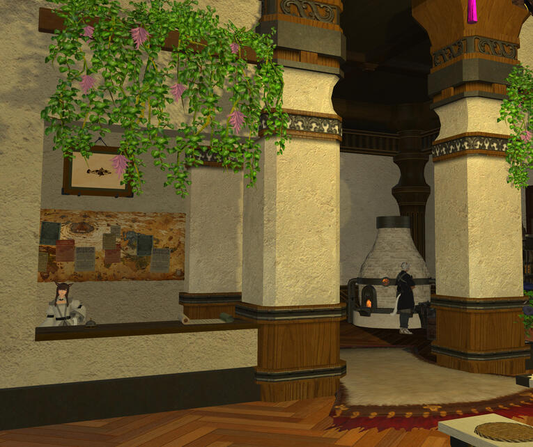 Our NPC staff will be delighted to serve your various adventuring needs.J'luyuh (Tia) and L'hara - Our receptionists! Feel free to drop weapons and coats with them as you come in, or drop a message in the book. They pretend they're not an item to remain professional, but it's the Steps' worst kept secret.R'naina - A librarian and lorekeeper, she helps staff the levemetes when Zeke isn't available. Applying for a Sharlayan scholarship after years working with the Ironworks.