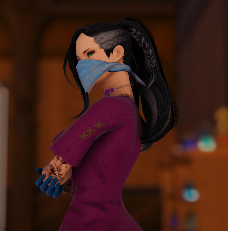 Graduate of the Sharlayan Studium, Morgana takes time out of her busy schedule to maintain and source new tomes for the Library, as well as helping her beloved Mis’to with all the paperwork he hates.While not technically staff, she is over often enough to support the operation such that she might as well be. Always happy to be a friendly ear, she'll help out wherever she is needed, including magic and healing. She does draws her line at the grill.